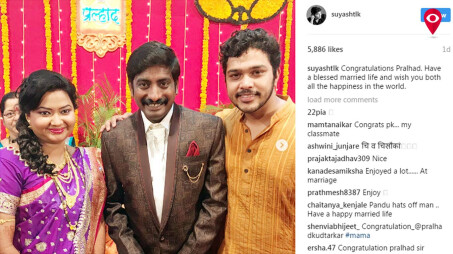 मुक्ताच्या त्याचा लग्नाचे फोटो सुयश टिळक ने शेअर केलाय. अंजली कानडे हिच्याशी प्रल्हादचा विवाह झालाय . प्रल्हादची पत्नी ही योगा प्रशिक्षक आहे. सुयश टिळकने प्रल्हाद आणि त्याची पत्नी अंजली यांच्यासोबतचा एक फोटो इन्स्टाग्राम अकाऊंटवर शेअर केला आहे.
