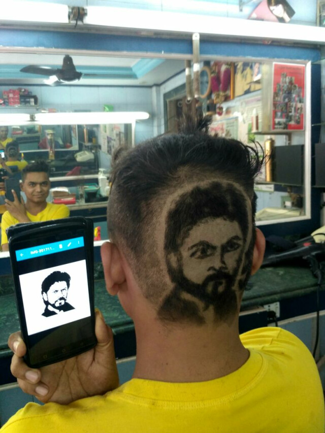 हेअर स्टाइलिस्ट सागर मोरे या अवलियानं शाहरुख खानची थ्रीडी हेअरस्टाईल साकारली आहे. या वेळी 'रईस' चित्रपटातील शाहरूखचा लूक त्यानं हेअरस्टाईलच्या माध्यमातून साकारला आहे. या ठेवणीत मागील बाजूनं केस बारीक करून त्यावर आवडत्या व्यक्तीचं नाव किंवा चेहरा कोरला जातो.
