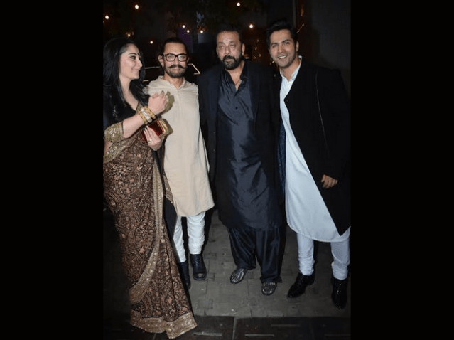 * आमिर खानच्या घरी संजय दत्तने बायको मान्यता बरोबर हजेरी लावली.