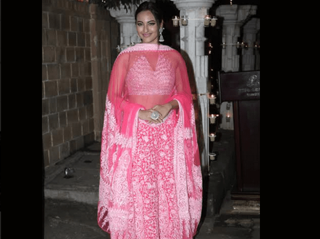 * अनिल कपूरच्या पार्टीत गुलाबी रंगाच्या या ड्रेस मध्ये अशी दिसत होती सोनाक्षी सिन्हा.