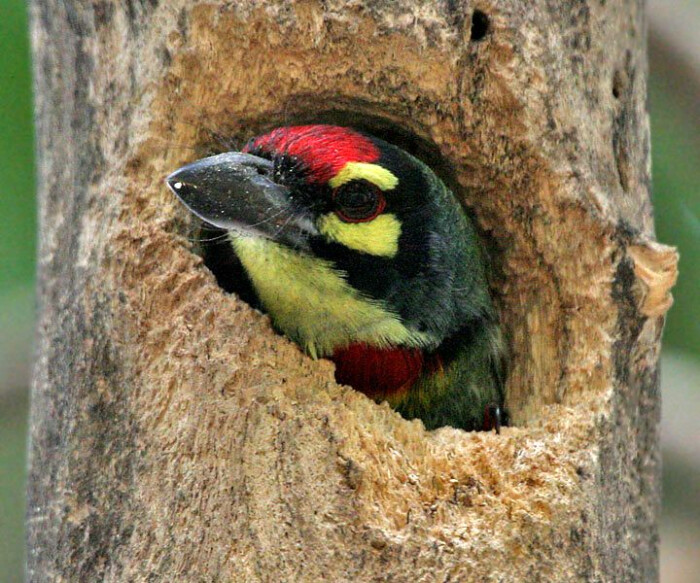 हिरव्या झाडांमध्ये मिळून मिसळून जाणारा तांबट आपल्यापासून अगदी जवळ असतो. एखाद्या वडाच्या झाडाखाली उभे असाताना तुम्हाला टक-टक आवाज ऐकू आला तर समजून जा की हा तांबट पक्षी आहे. पिंपळ, अंजीर, जांभूळ या झाडांवर तो आढळतो. शेवगा, काटेसावर, शिरीष, आंबा, गुलमोहोर, चिंच या झाडांच्या वठलेल्या फांद्यामध्ये चोचीनं खोदून घरटं केलं जातं. घरात जाण्यासाठी नळीसारखा प्रवेशमार्ग असतो. या नळीच्या शेवटी अंडयाची कोठी असते. तांबटाचं घरटं नेहमी फांदीच्या खालच्या बाजूला असतं.