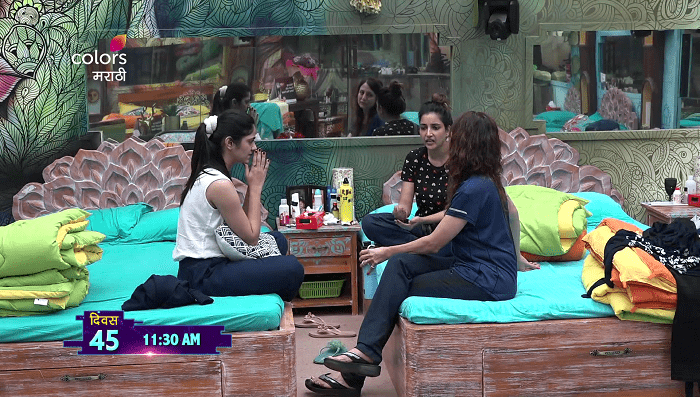 या तिघींमध्ये होणाऱ्या चर्चेचा विषयही तोच आहे. रूपालीचं म्हणणे आहे की, आज जे मी गाण म्हटलं ते म्हणूनच होतं की, अजूनही मला कुठेतरी वाटत आहे की आपण तिघी एकत्र आहोत, तू ऐकलं नाहीस का ते. त्यावर किशोरी म्हणाल्या की, मला डबल डबल वागायला जमत नाही, मी एकमार्गीच वागते. कधी एक बोलायचं, तर कधी दूसरं बोलायचं... यामध्ये मला नाही अडकायचं आहे. त्यावर वीणा म्हणाली की, असं कोणीच करत नाही. त्यावर रुपाली म्हणाली की, पंचिंग बॅगवाला जो टास्क होता त्यावर तुझा फोटो लावण्याचं काही कारण होतं हे मला तुझ्याशी बोलताच येत नाही, तुला सांगता येत नाही काही, तुला समजवता येत नाही. त्यावर किशोरी म्हणाल्या की, मी नेहमीच गप्प असते तुम्ही दोघीच बोलत असता.