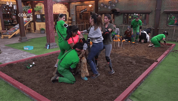टास्क सुरु झाल्यावर किशोरी यांना खारूताई असं सदस्य म्हणू लागले, तर हीना आणि शिवमध्ये पुन्हा एकदा वाद विवाद सुरु झाला. हीना शिवच्या अंगावर येत होती आणि तिचं म्हणणं होतं की, बळाचा वापर करू नकोस. त्यावर शिव म्हणाला की, तू अंगावर येत आहेस माझ्या, मला डोक्यानं हलका समजतेस का? शिवानीचं म्हणणं होतं की, ती मुद्दाम येत आहे. अभिजीत माधवला ढकलतो आहे. त्यावर अभिजीतचं म्हणणं होतं की, ढकलणारच ना... शिवानीचं यावर म्हणणं होतं की, दादा काय बोलला ऐकलंस का? शिव ढकल तू पण... त्यावर अभिजीत म्हणाला की, ती मुद्दाम बोलत आहे शिव... शिवचं यावर सगळ्यांनाच म्हणणं होतं की, मला गेम समजतो सगळे शांत बसा. त्यामुळं पुढं काय घडतं ते पहायला मजा येणार आहे.