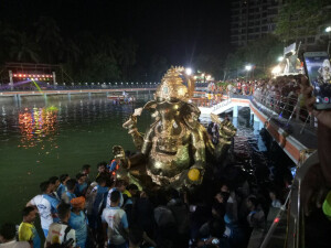 गणपती बाप्पा मोरया… पुढच्या वर्षी लवकर या… अशा जयघोषात मुंबईतील अकरा दिवसांच्या गणरायाचे मोठ्या जल्लोषात आणि भावपूर्ण वातावरणात विसर्जन करण्यात आले. यांत घरगुती आणि गणेशोत्सव मंडळाच्या लहानमोठ्या गणेश मूर्तींचा समावेश होता. लालबागच्या राजासह दक्षिण मुंबईतील प्रसिद्ध मंडळांच्या गणेश मूर्तींचे विसर्जन पहाटेपर्यंत सुरूच होते.