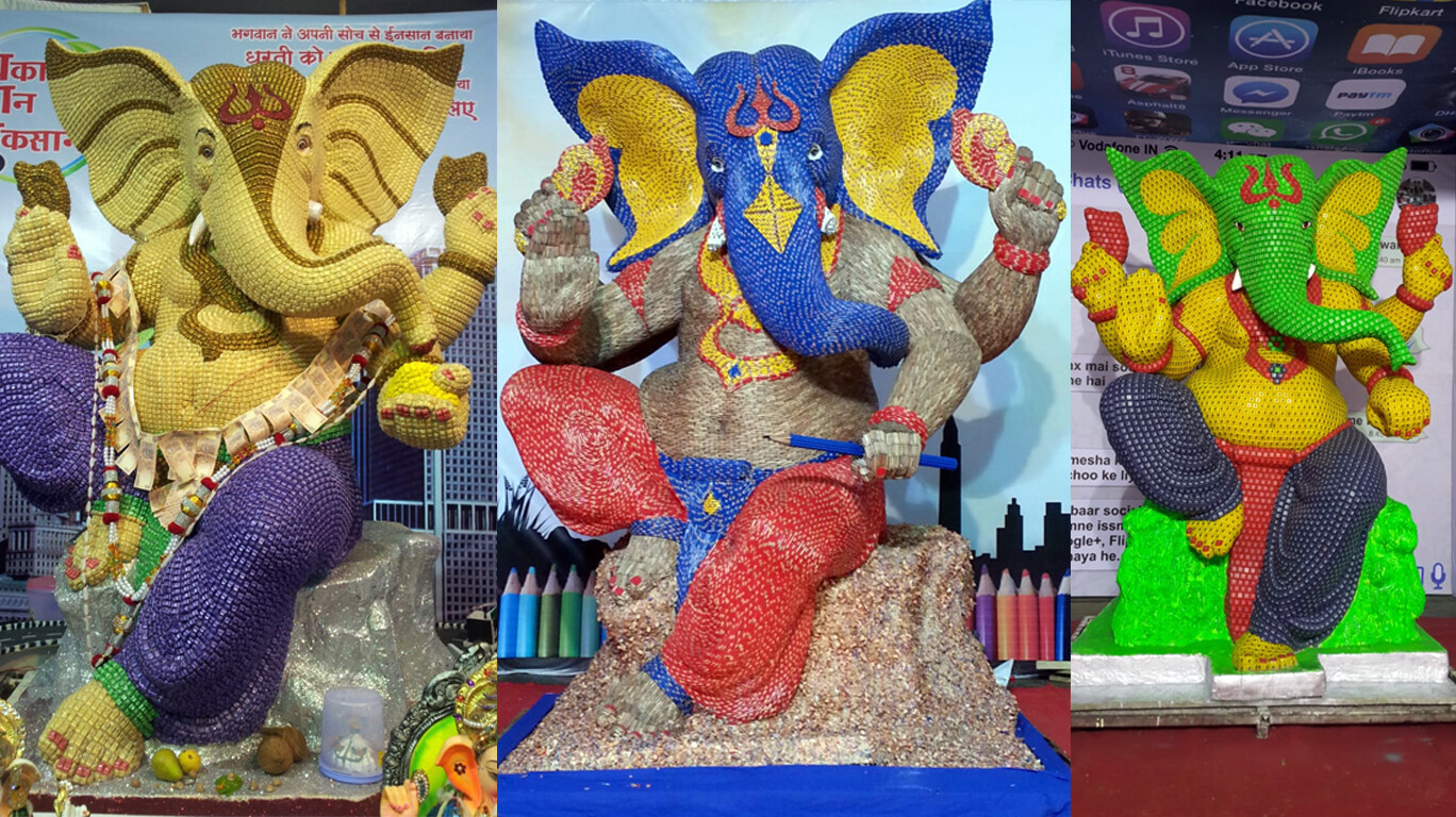मागील ८ वर्षांपासून आम्ही वेगवेगळ्या रुपात बाप्पाची मूर्ती साकारत आहोत. २०१२ मध्ये आम्ही चॉकलेटचा वापर करून गणपतीची मूर्ती साकारली होती. तसंच, २०१५ मध्ये खोडरबरचा वापर करून सोशल मीडियावर आधारित मूर्ती साकारली होती.