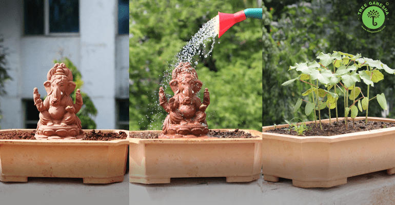 विरघळलेली माती तुम्ही कुंडीत टाकू शकता. दोन आठवड्यांनंतर बियांना अंकुर फुटतो आणि त्याचे रोपटे होते. अशाप्रकारे बाप्पा विसर्जनानंतर एका रोपट्याच्या माध्यमातून तुमच्यासोबतच असतो. दत्तारी कोथूर या तरूणाची ही संकल्पना आहे. ९ इंचापासून ते १८ इंचापर्यंतच्या ट्री गणेशा आहेत. ज्यांची किंमत २२०० ते ४५०० हजार रूपयांपर्यंत आहे.