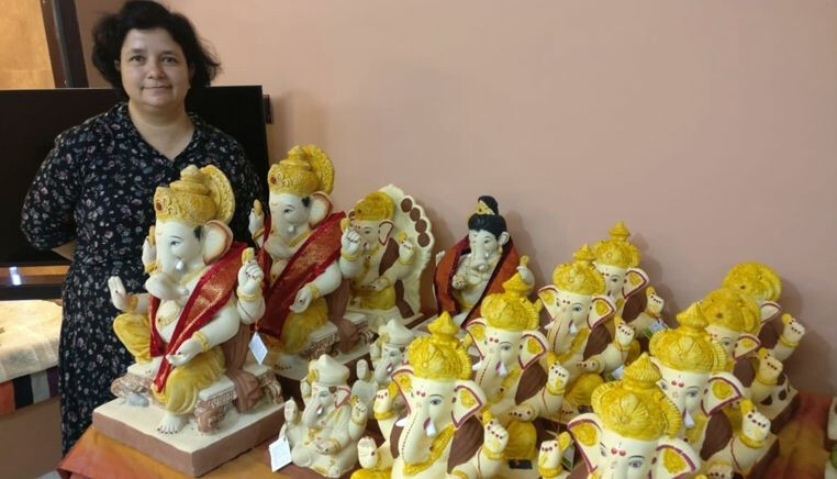 माती, मुलतानी माती, गेरू आणि हळद यांचा वापर करून इकोएक्जिस्ट ही संस्था गणेश मूर्ती बनवते. गणेश मूर्ती उन्हात सुकवल्या असल्यामुळे विसर्जनादरम्यान पाण्यात सहज विरघळतात. २ ते २३ इंच उंच अशा गणेश मूर्ती इथं उपलब्ध आहेत. याशिवाय त्यांनी समुद्र किनारी निर्माल्य कलशची सोयदेखील केली आहे. या निर्माल्यापासून ते होळीचे रंग तयार करतात.