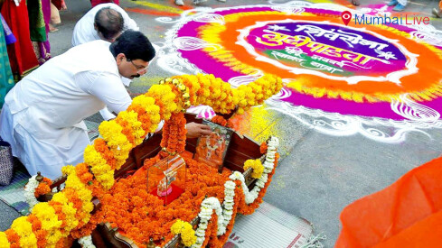जोगेश्वरी - गुढीपाडवा हिंदू नववर्षानिमित्त जोगेश्वरी विधानसभा क्षेत्रातर्फे भव्य अशी स्वागत यात्रा काढण्यात आली. या स्वागत यात्रेचा शुभारंभ गृहनिर्माण, उच्च व तंत्रशिक्षण तसेच रत्नागिरी जिल्हा पालकमंत्री रविंद्र वायकर यांच्या हस्ते पालखीतील गणरायाची तसेच गुढीची पुजा झाल्यानंतर करण्यात आला.