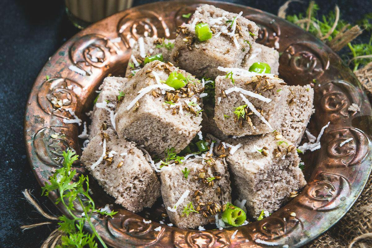 उपवासाच्या चटणीबरोबर फराळी ढोकळ्याचा आस्वाद घ्या.