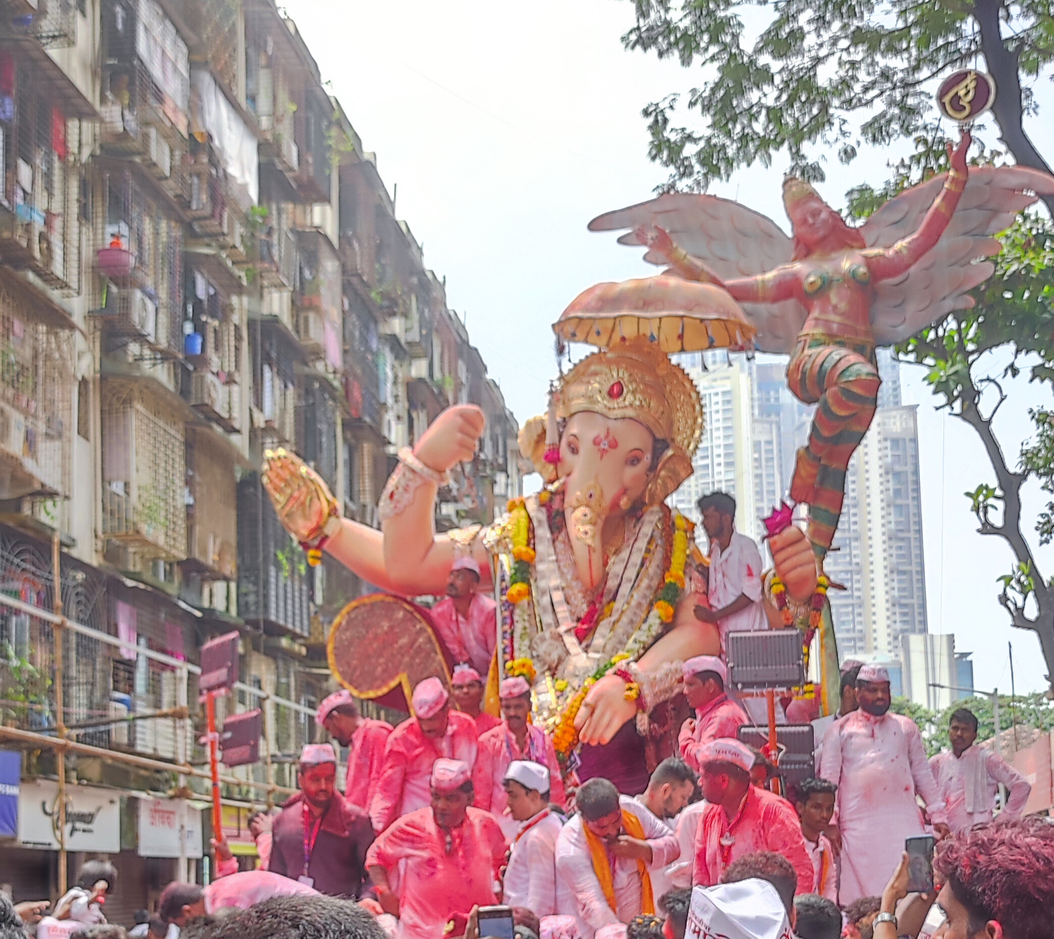 गिरणगावचा राजाच्या विसर्जन मिरवणुकीला गणेशभक्तांची प्रचंड गर्दी होती.