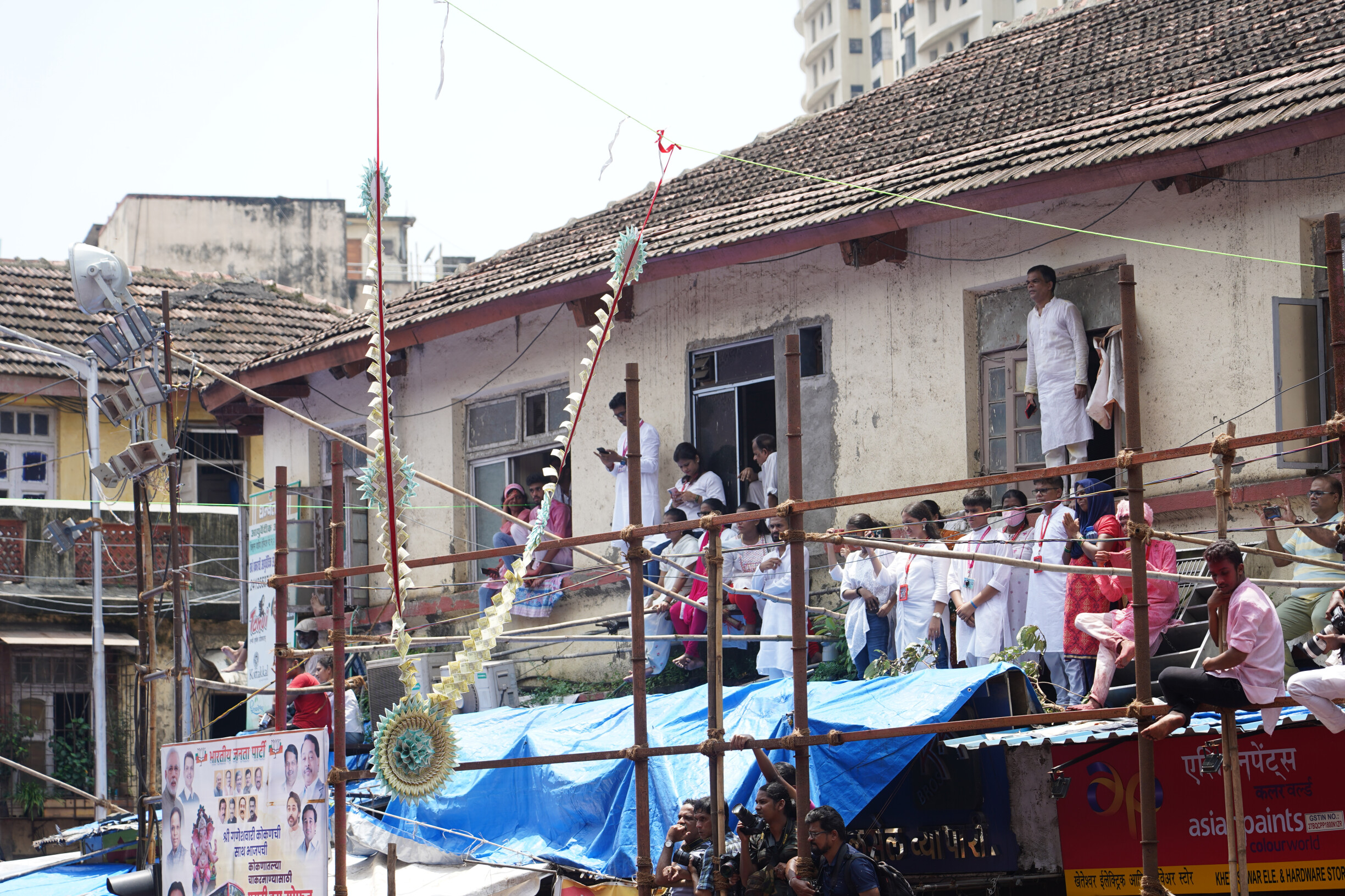 गणपती बाप्पांचे दर्शन घेण्यासाठी लोक घराच्या छतावर आले होते.