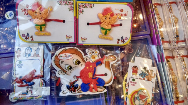 लहान मुलांसाठी आकर्षक कार्टुंनच्या राख्या बाजारात उपलब्ध झाल्या आहेत. स्पायडरमॅन, मिकीमाऊस, डोरेमॉन, बाल गणेश, अँग्रीबर्डस्, बेन टेन, छोटा भीम अादी विविध कार्टुनच्या राख्या बाजारात विक्रीसाठा आल्या आहेत. या राख्यांची किंमत २० रुपयांपासून ५० रुपयांपर्यंत आहे.