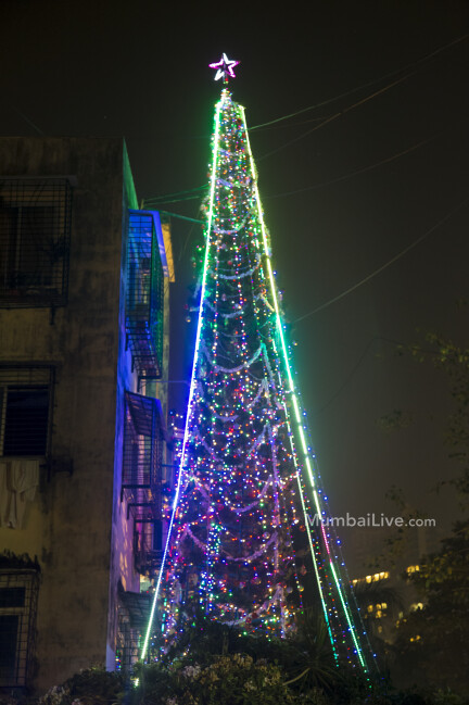 वरळीतील आदर्श नगर सोसायटीमधील सलडाना कुटुंबीयांच्या मालकीचं हे ख्रिसमस ट्री आहे. या झाडाची उंची ६० ते ६५ फूट एवढी आहे. ४५ वर्षांपूर्वी डग्लस सलडाना यांनी हे झाड आपल्या घराबाहेर लावलं होतं. तेव्हापासून आजपर्यंत ते या झाडाची निगा राखत आहेत. दरवर्षी ख्रिसमसमध्ये हे झाड ते रोषणाईने सजवतात. या डेकोरेशनसाठी किमान २० दिवसांचा कालवाधी लागतो. यंदा त्यांनी १० हजार ट्विंकल्स लाईट्स, छोटे छोटे सांताक्लॉज, बेल, स्नोमॅन अशा विविध वस्तूंनी हे ख्रिसमस ट्री सजवलं आहे.