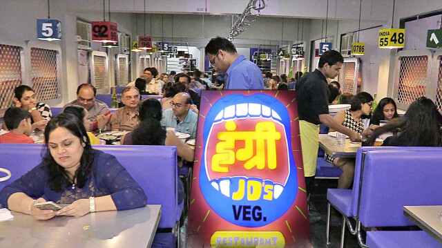 बोरिवलीच्या 'हंग्री जेडी' हॉटेलमध्ये शिरताच तुम्ही हे असले अतरंगी शेर (थोडक्यात चारोळ्या!) पाहाता आणि 'हे काहीतरी भलतंच आहे' याचा साक्षात्कार तुम्हाला होतो. समोर एसी रूमऐवजी चक्क वेस्टर्न रेल्वेचा एक डबाच बघून नुकत्याच झालेल्या तुमच्या साक्षात्कारावर तुमचा विश्वास बसू लागतो. आणि लोकलच्या त्या डब्यात दोन सीट्सच्या मध्ये मोकळी जागा नसून थेट जेवणाची टेबलं बघून तर तुम्हाला 'अरे हे चाललंय तरी काय?' असा आश्चर्यवजा प्रश्न पडल्यावाचून राहाणार नाही, ही आमची खात्री आहे!