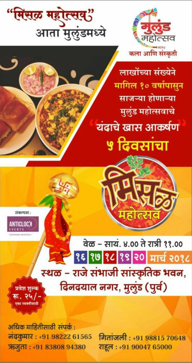 आता मुंबईत एवढे मिसळोत्सव आयोजित होतात की काही विचारायला नको. विले पार्ले, माहिम आणि ठाणे या ठिकाणी आयोजित मिसळोत्सवात खवय्यांनी चांगलाच ताव मारला. इथल्या वेगवेगळ्या स्वादिष्ट अशा मिसळींचा आस्वाद खवय्यांनी घेतला. पण फक्त दोन दिवसच मिसळोत्सवाचं आयोजन का केलं? अशी नाराजीसुद्धा खवय्यांनी व्यक्त केली. पण आता पुन्हा एकदा मिसळोत्सव रंगणार आहे आणि तोही चक्क पाच दिवस! पाच दिवस तुम्ही अगदी मनसोक्त मिसळ महोत्सवचा आनंद लुटू शकता. फक्त मिसळच नाही, तर यासोबतच सांस्कृतिक कार्यक्रमांची मेजवानी देखील असणार आहे. त्यामुळे पेटपूजा आणि मनोरंजन अशी मुलुंडकरांची उत्तम सोय झाली आहे.