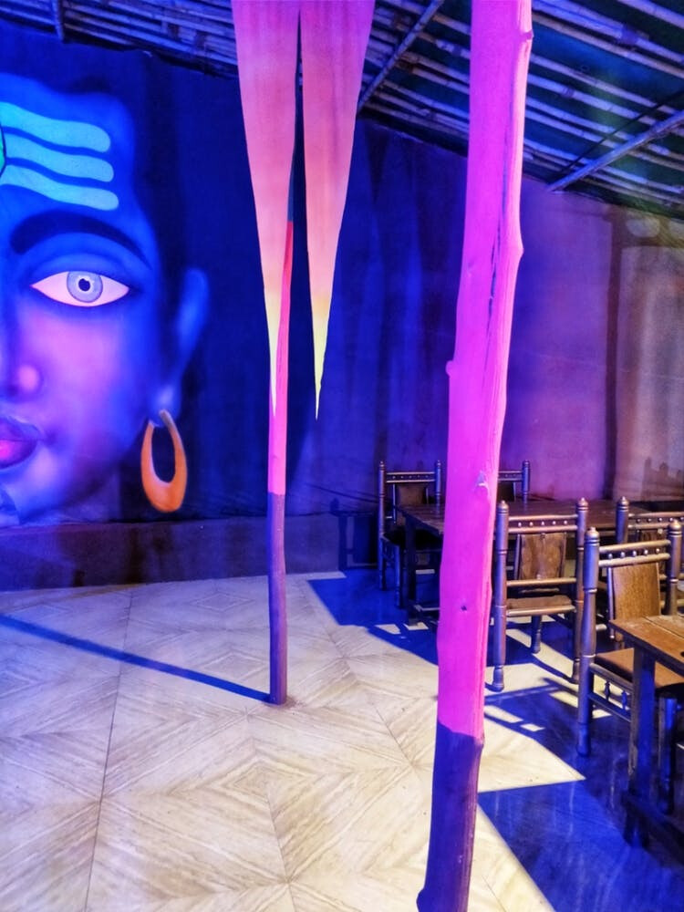 शिव थीमवर आधारित या रेस्टॉरंटचं नाव आहे शिवा फॉरेस्ट रेस्टॉरंट. रेस्टॉरंटमध्ये मोठी शंकराची मूर्ती पहायला मिळते. शिव थीम असल्यामुळे रेस्टॉरंटमध्ये निळ्या रंगाचे निऑन लाईटिंग लावण्यात आली आहे. त्यामुळे इथलं वातावरण काही जणांसाठी थोडं विचित्र असेल. पण तुम्हाला हे वातावरण नक्की आवडेल याची मला खात्री आहे. तुमचं आवडतं ड्रिंक घेऊन तुम्ही तुमच्या गँगसोबत इथं जाऊ शकता.