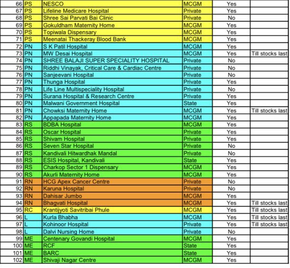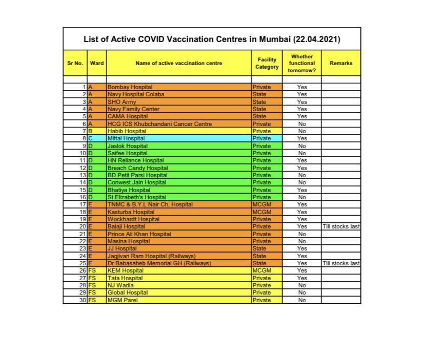 कोरोना लसींचा साठा मर्यादीत असल्याने मुंबईसहीत राज्यात अनेक कोरोना लसीकरण बंद पडण्याच्या मार्गावर आहेत. त्यामुळे मुंबई महानगरपालिकेने लसीकरणाची कोणती केंद्रे सुरू आहेत हे नागरिकांना समजावे म्हणून लसीकरण केंद्रांची यादी दिली आहे. पालिकेने शुक्रवारी आपल्या ट्विटरवरून मुंबईतील राज्य, खासगी आणि पालिकेच्या लसीकरण केंद्रांची यादी जाहीर केली आहे.