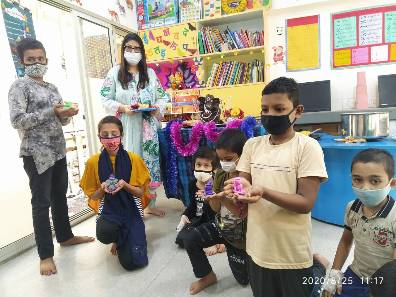 बाप्पासाठी सुरेख असा देखावा ही साकारण्यात आला आहे. यात मुलांनी पर्यावरणासंबधी अनेक चित्र काढले आहेत. यासाठी गणपतीसाठी मोदकाचा नैवेदय ही ठेवण्यात आला आहे. हा सण साजरा करताना अनेक मुलांच्या चेहऱ्यावर आनंद पाहायला मिळत होता. तसंच, या मुलांमध्ये नवचैतन्य निर्माण करण्याचा प्रयत्न करत असून, त्यांना आयुष्यभर लक्षात राहातील अशा संस्मरणीय आठवणी निर्माण करण्याचा प्रयत्न करत असल्याचंही डॉ. बोधनवाला यांनी म्हटलं.