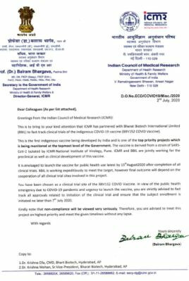 देशात तयार झालेल्या COVAXIN लसीची जुलै महिन्यात माणसांवर चाचणी घेण्यात येणार आहे. भारत बायोटेक कंपनीनं तयार केलेली लस ही स्वदेशी बनावटीची म्हणजेच संपूर्णत: स्थानिकरीत्या तयार झालेली आहे. विषाणूला विलग करून, प्रयोगशाळेत ही लस तयार करण्यात आली आहे. हैदराबादस्थित भारत बायोटेक कंपनीनं ही लस तयार केली आहे.