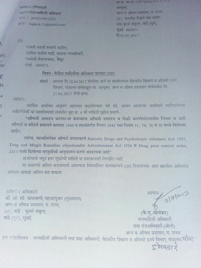 स्वाती पाटील गेल्या 7 महिन्यांपासून या गोष्टींचा पाठपुरावा करत आहेत. त्यांनी याविषयी सार्वजनिक आरोग्यमंत्री डॉ. दीपक सावंत यांच्यापासून खुद्द पंतप्रधान नरेंद्र मोदी यांच्यापर्यंत सर्वांशीच पत्रव्यवहार केला आहे. पण, अजूनही त्यांच्याकडून समाधानकारक प्रतिसाद मिळाला नसल्याचं सामाजिक कार्यकर्त्या स्वाती पाटील यांनी सांगितलं.