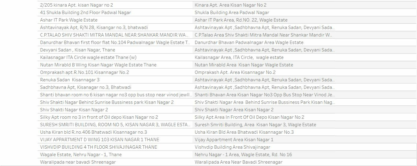 | VISHVDIP BUILDING 4TH FLOOR SHIVAJINAGAR THANE, VIJAY APPARTMENT D WING 103 KISAN NAGAR 1 THANE | |