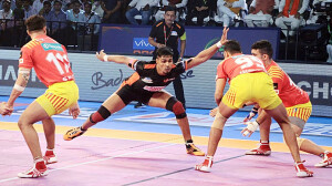 गुजरात संघ पहिल्या अर्ध्या वेळात फक्ते एक अंकाने पुढे होते. अर्ध्या वेळानंतर गुण संख्या ही 14-13 अशी होती. पण यू मुम्बाच्या उत्कृष्ट रायडर काशिलिंग आडके याने देखील एकट्याने 6 अंक मिळवून संघाला मजबूत करण्याचा प्रयत्न केला. दुसरीकडे गुजरात संघासाठी सचिनने एकट्याने 13 अंक बनवून संघाला विजयी करण्यास मोलाची कामगिरी बजावली.