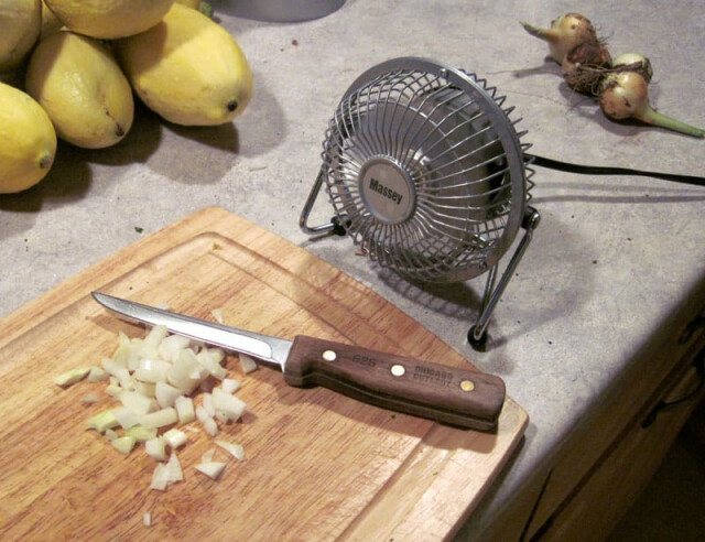 7) कांदा कापताना पंखा बंद करा. त्यामुळे कांदा कापताना तुमच्या डोळ्यांना आणि इतरांना अधिक त्रास होणार नाही.