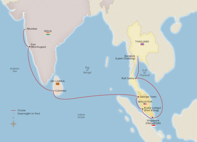 फ्लाईटनं बँकॉकला पोहचायला तुलनेने कमी वेळ लागतो. पण क्रूझनं बँकॉकला जाण्याची मजा काही औरच! क्रूझनं तुम्ही १६ दिवसांमध्ये बँकॉकला पोहोचू शकता. या अंतर्गत पर्यटकांना पाच देशांना भेटी देता येतील. १६ दिवसांत ही क्रूझ गोवा, कोलंबो, क्वालालंपूर, सिंगापूर या देशांना भेट देत बँकॉकला पोहोचणार आहे.