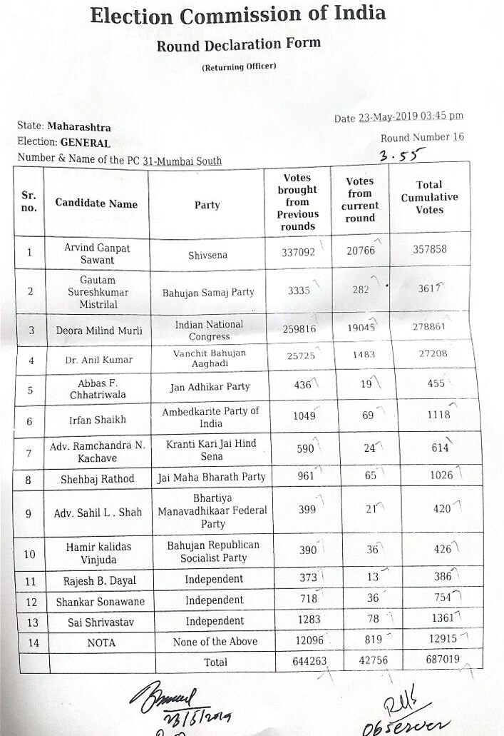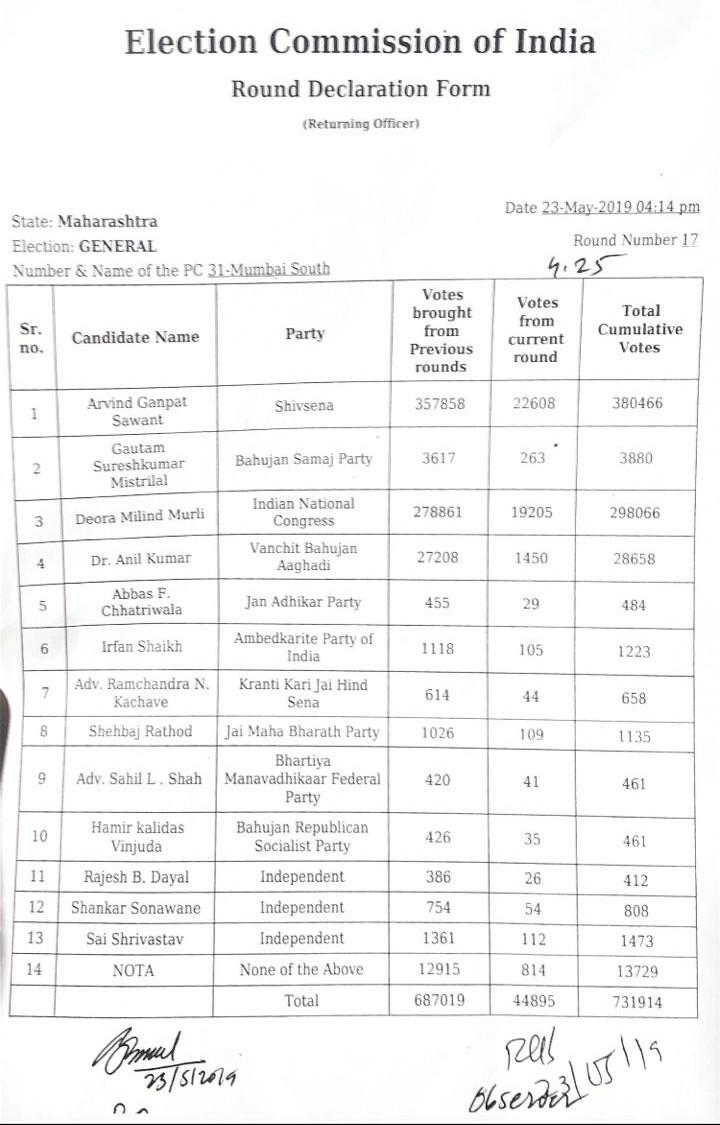 | MUMBAI SOUTH CENTRAL | RAHUL SHEWALE (SS) 0↑ ↓ | EKNATH GAIKWAD (INC) 0↑ ↓ | OTHERS 0↑ ↓ |