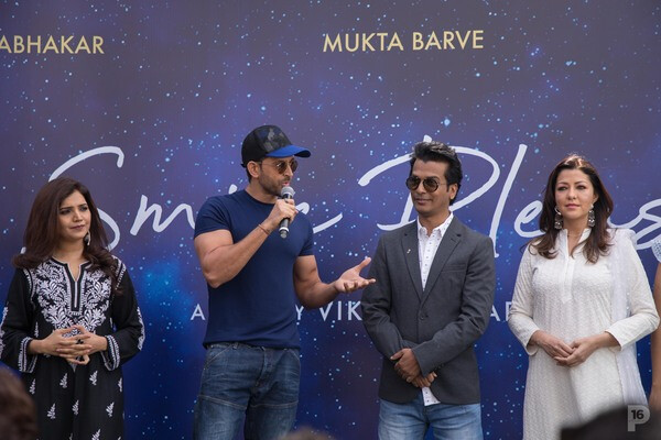 या सोहळ्याला ऋतिकसोबतच अमिषा पटेल, झरीन खान, रॉनीत रॉय, किआरा अडवाणी, श्वेता बच्चन- नंदा अशा बॉलीवूडमधील आणि मराठी सिनेसृष्टीतील कलाकारांनी उपस्थित राहून विक्रम फडणीस आणि 'स्माईल प्लीज' चित्रपटाच्या संपूर्ण टीमला शुभेच्छा दिल्या. मुक्ता बर्वे, ललित प्रभाकर, प्रसाद ओक, अदिती गोवित्रीकर, तृप्ती खामकर या कलाकारांनी यावेळी चित्रपटातील आपापल्या व्यक्तिरेखांची ओळख करून दिली.