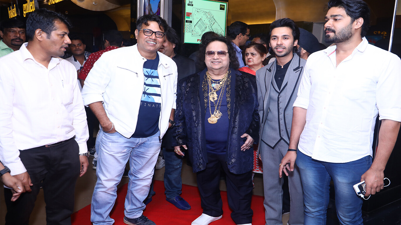 ‘लकी’ सिनेमासाठी गायन करणारे गायक-संगीतकार बप्पी लाहिरी यांच्यासोबत दिग्दर्शक संजय जाधव व मुख्य भूमिकेतील अभय महाजन.