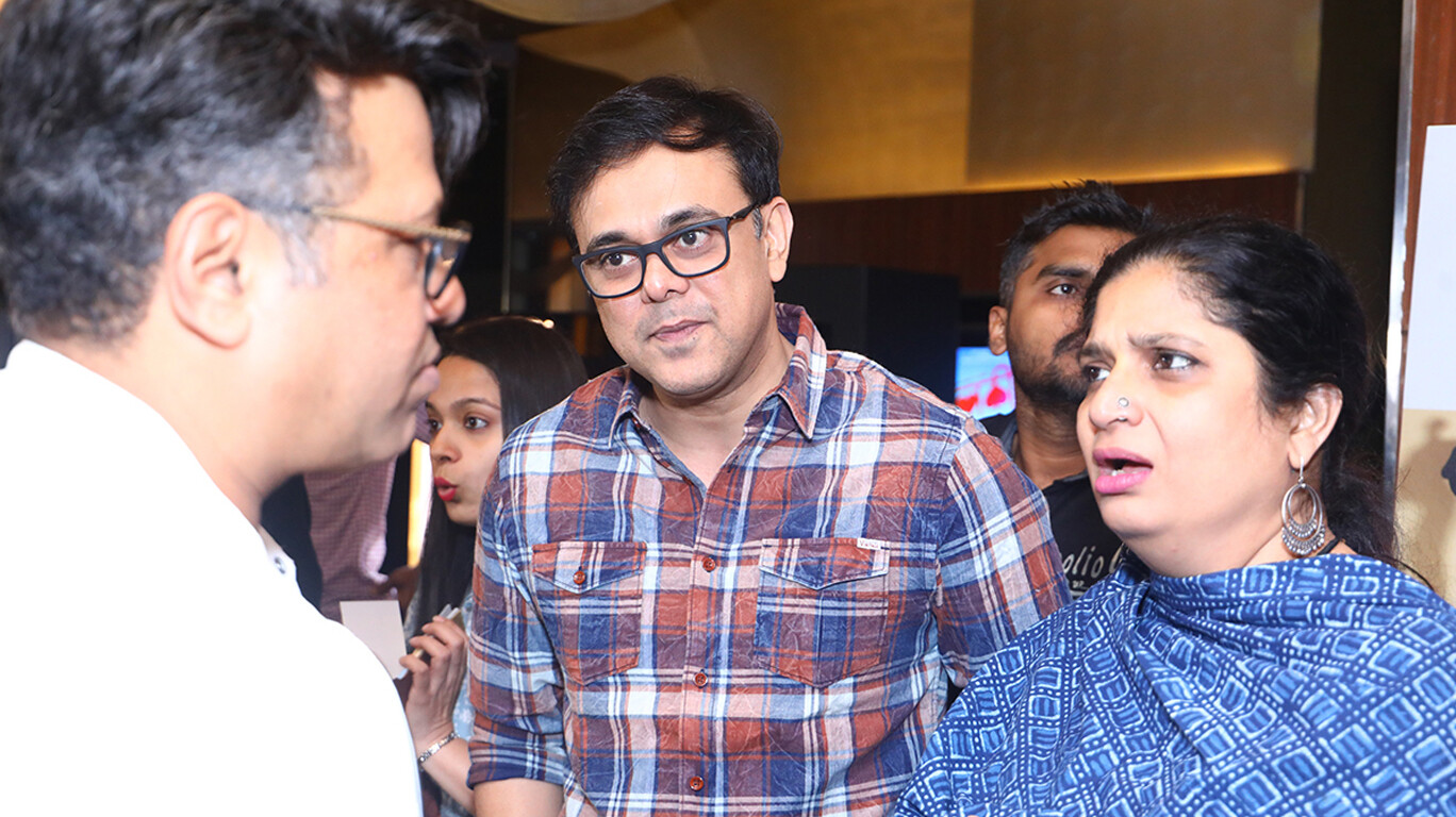 संजय जाधवसोबत गप्पा मारताना अभिनेता सुमित राघवन आणि पत्नी चिन्मयी सुमीत.