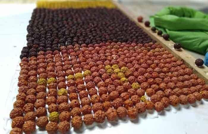 ८ बाय ८ या आकारात ही प्रतिमा साकारण्यात आली आहे. तब्बल ३३ हजार रुद्राक्षांचा वापर करून बाळासाहेबांची प्रतिमा साकारण्यात आली आहे. रुद्राक्षासोबत बाळासाहेब ठाकरेंचं असलेलं नातं काही वेगळं सागांयची गरज नाही. त्यामुळेच त्यांची प्रतिमा रुद्राक्षांनी साकारण्याचा निर्णय चेतनं राऊतनं घेतला. चेतन जे.जे. स्कूल ऑफ आर्टचा विद्यार्थी असून त्यानं त्याच्या १० सहकाऱ्यांच्या मदतीनं ही प्रतिमा साकारली. या माध्यमातून जागतिक विक्रम करण्याचा प्रयत्नही चेतननं केला आहे.