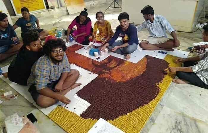 शिवसेना प्रमुख बाळासाहेब ठाकरे यांची आज ९३वी जयंती आहे. जयंतिनिमित्त मुंबईतील चेतन राऊत या कलाकारानं रुद्राक्षांनी बाळासाहेब ठाकरेंची प्रतिमा साकारली आहे. शिवसेना भवनासमोरच ही प्रतिमा साकारण्यात आली आहे.