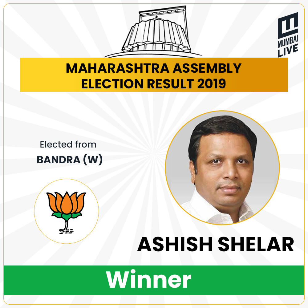 भाजपाचे मुंबई अध्यक्ष आशिष शेलार यांनी अपेक्षेप्रमाणे बांद्रा पश्चिममधून बाजी मारली आहे. शेलार यांनी काँग्रेसचे उमेदवार आसीफ झकेरीया यांचा २७ हजार ७५९ मतांनी पराभव केला.