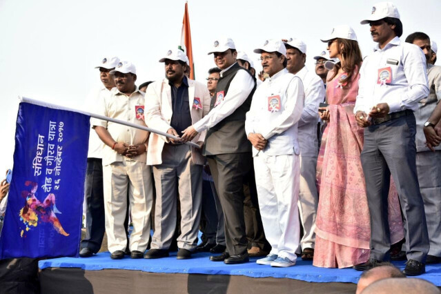 सामाजिक न्याय विभागातर्फे रविवारी सकाळी वरळी सी फेस (जे. के कपूर चौक) ते चैत्यभूमी अशी संविधान सन्मान दौड आयोजित करण्यात आली होती. मुख्यमंत्री फडणवीस यांच्या समवेत उपस्थित सर्व मान्यवर, दौड मध्ये सहभागी खेळाडूंनी संविधानाच्या प्रस्ताविकेचं सामूहिक वाचन केलं. त्यानंतर मुख्यमंत्र्यांनी संविधान दौडला झेंडा दाखवल्यावर दौडची सुरवात झाली.