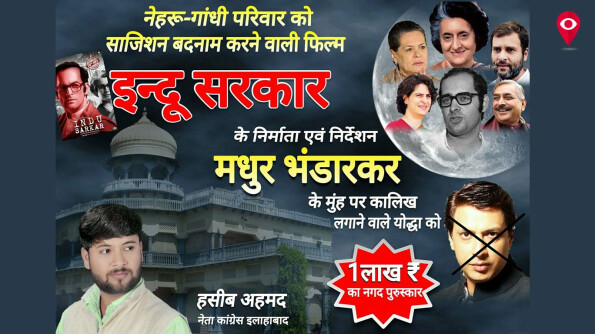 अलाहाबादमधील काँग्रेसचे नेते हसीब अहमद यांनी या चित्रपटाला विरोध दर्शवत एक वादग्रस्त पोस्टरदेखील प्रसिद्ध केले आहे. या पोस्टरमध्ये लिहिले आहे की, 'इंदू सरकार' या चित्रपटाद्वारे नेहरू-गांधी कुटुंबाची बदनामी करण्याचा कट रचण्यात आला आहे. त्यामुळे या चित्रपटाचे निर्माते, दिग्दर्शक मधुर भंडारकर यांच्या चेहऱ्यावर काळे फासणाऱ्या योद्ध्याला 1 लाख रुपयांचे पारितोषिक देण्यात येईल.