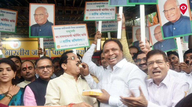 रामनाथ कोविंद यांच्या विजयाची घोषणा होताच मुंबईमध्ये देखील भाजपा कार्यकर्त्यांनी जल्लोष केला. यावेळी मुंबई भाजपा अध्यक्ष आशिष शेलार यांनी सगळ्यांचे आभार व्यक्त करत जनता आजही भाजपाच्या पाठीशी असल्याचे सांगितले.