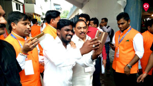 राज्य कार्यकारिणीच्या बैठकीत अलिप्तपणे वावरणाऱ्या एकनाथ खडसे यांच्या चेहऱ्यावर भाजपाच्या कार्यकर्त्यांनी मात्र स्मितहास्य आणलं. बोरिवलीमधील भाजपा प्रदेश कार्यकारिणीच्या बैठकीला उपस्थित असलेले खडसे संध्याकाळी बैठक संपल्यानंतर निघत असताना पक्षाचे युवा कार्यकर्ते, पदाधिकाऱ्यांनी त्यांना गाठत त्यांच्यासोबत सेल्फी काढला. निघण्याच्या तयारीत असलेल्या अनेक नेत्यांना हे दृश्य पाहून हेवा वाटल्यावाचून राहिला नसेल. यानिमित्ताने नाथाभाऊंची क्रेझ युवा वर्गात कायम असल्याचं पहायला मिळालं.