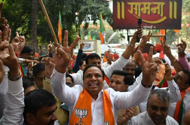 भाजपाच्या विजयाचं गुजरातच्या अहमदाबादपासून थेट मुंबईच्या गल्लीबोळापर्यंत जल्लोषात स्वागत करण्यात आलं. मुंबईत तर काही ठिकाणी निकाल येण्याआधीच भाजपच्या विजयाचे बॅनर झळकले होते! (इतका विश्वास खात्रीशीर माहिती असल्याशिवाय असणं तसं कठिणच वाटतं!) भाजपचे मुंबई अध्यक्ष आशीष शेलार यांनीही भाजपच्या कार्यकर्त्यासोबत जल्लोष केला. मात्र, त्यांच्या मागे 'सामना' नावाच्या बॅन्जोचा बोर्ड आणि हातात त्याच 'सामना'चा ढोल हे योगायोगाने जुळून आलेलं चित्र खूप काही सांगून जात होतं. येणाऱ्या काळात शिवसेना आणि भाजपमधले संबंध कोणत्या दिशेला जाऊ शकतात, हे यातून सहज प्रतीत व्हावं.