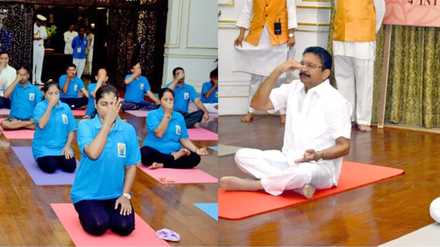 राज्यपालांनी राजभवन येथील समुद्रकिनारी योगप्रेमी नागरिकांनसोबत योगासनं केली. त्यानंतर त्यांनी उपस्थितांना जागतिक योग दिनाच्या शुभेच्छा दिल्या.