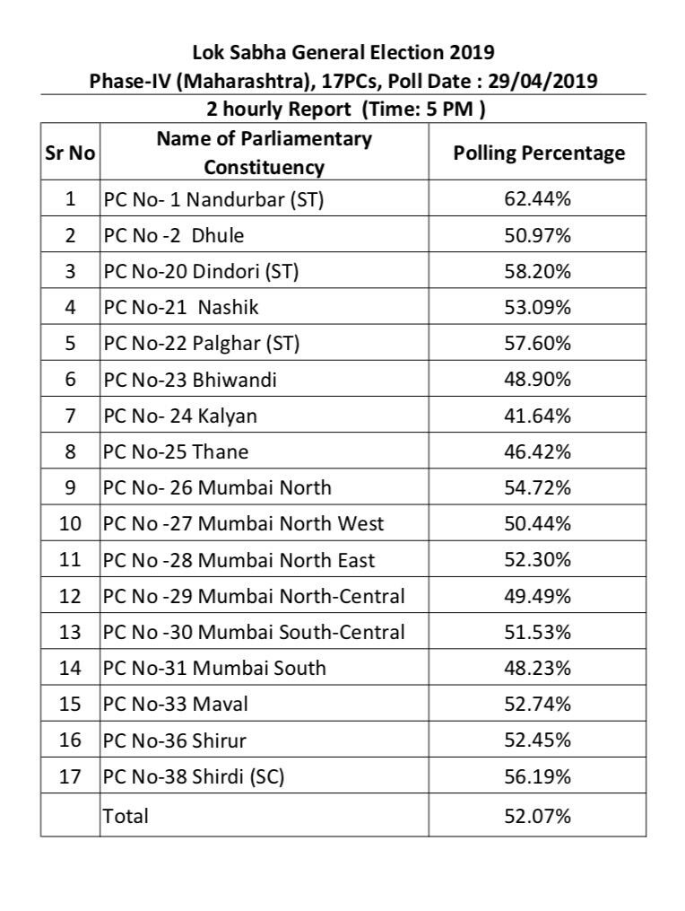 चौथ्या टप्प्यात नाशिक, धुळे, शिर्डी, शिरूर, मावळ, मुंबई, ठाण्यासहित १७ ठिकाणी मतदान घेण्यात आलं. शनिवारपासून सलग २ दिवस असलेल्या सुट्ट्या, शाळा-काॅलेजांच्या आटोपलेल्या परीक्षा तसंच उन्हाचा पारा चाळीशीत गेल्यामुळे मतदानाचा टक्का घसरणार काय? या भीतीपोटी सर्वपक्षीय उमेदवारांच्या पोटात गोळा आला होता.