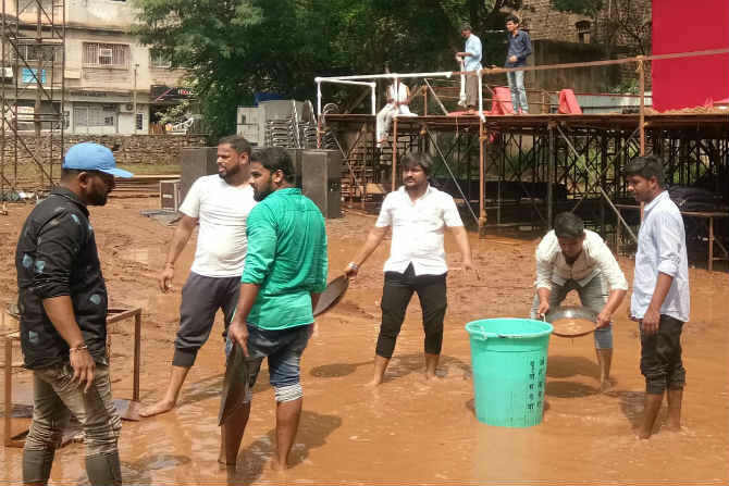 मंगळवारी रात्री पाऊस झाल्यानंतर सभेचं ठिकाण असलेल्या पुण्यातील नातू बाग येथील मैदानात चिखल आणि पाणी साचलं होतं. परंतु सभा रद्द होऊ नये यासाठी कार्यकर्त्यांनी लागलीच वाळू आणि माती टाकून मैदान सुकवण्याचा प्रयत्न केला.