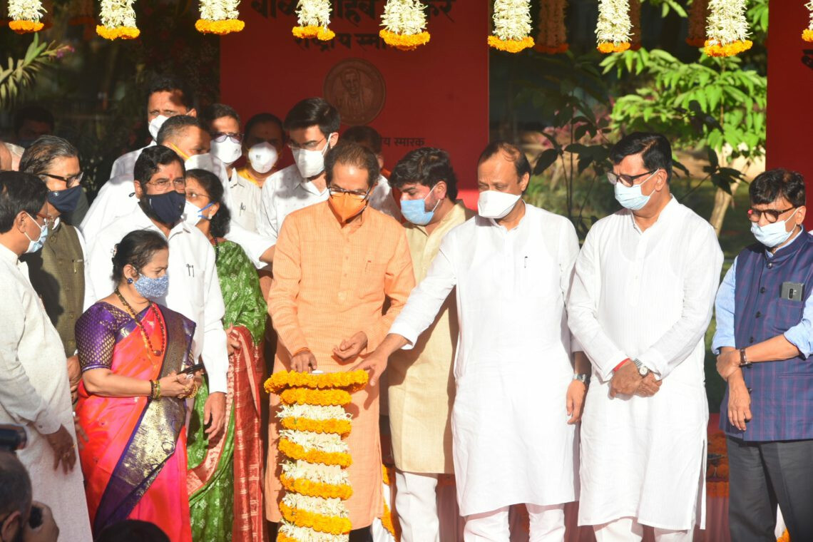 (maharashtra cm uddhav thackeray lays foundation stone for bal thackeray national memorial in mumbai)