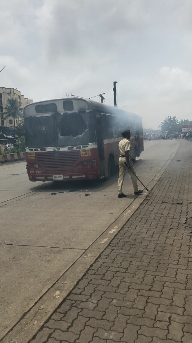 #MumbaiBandh: Protestors tried to set fire to 501 buses in #Vashi