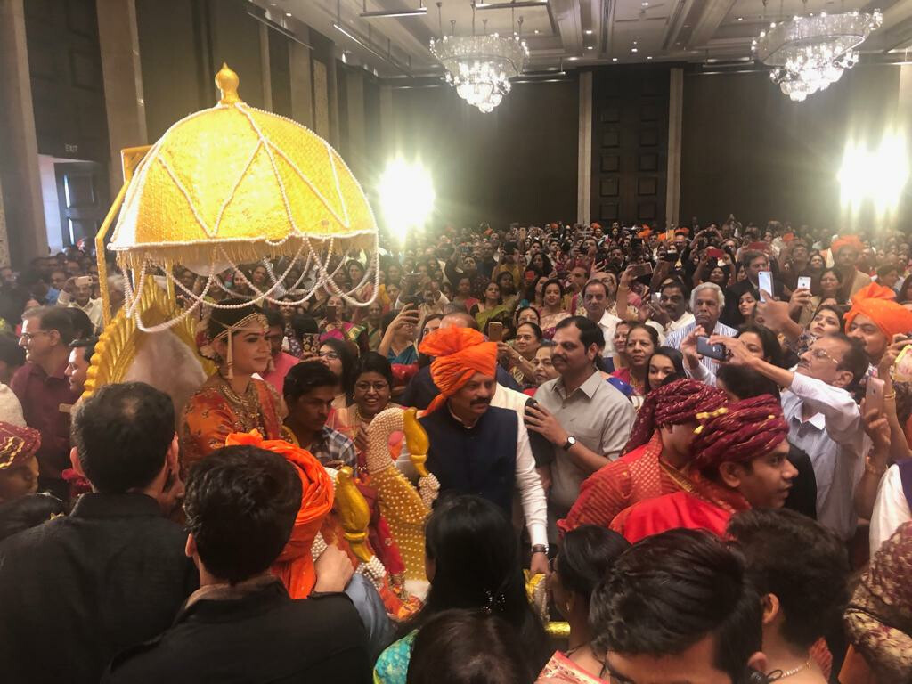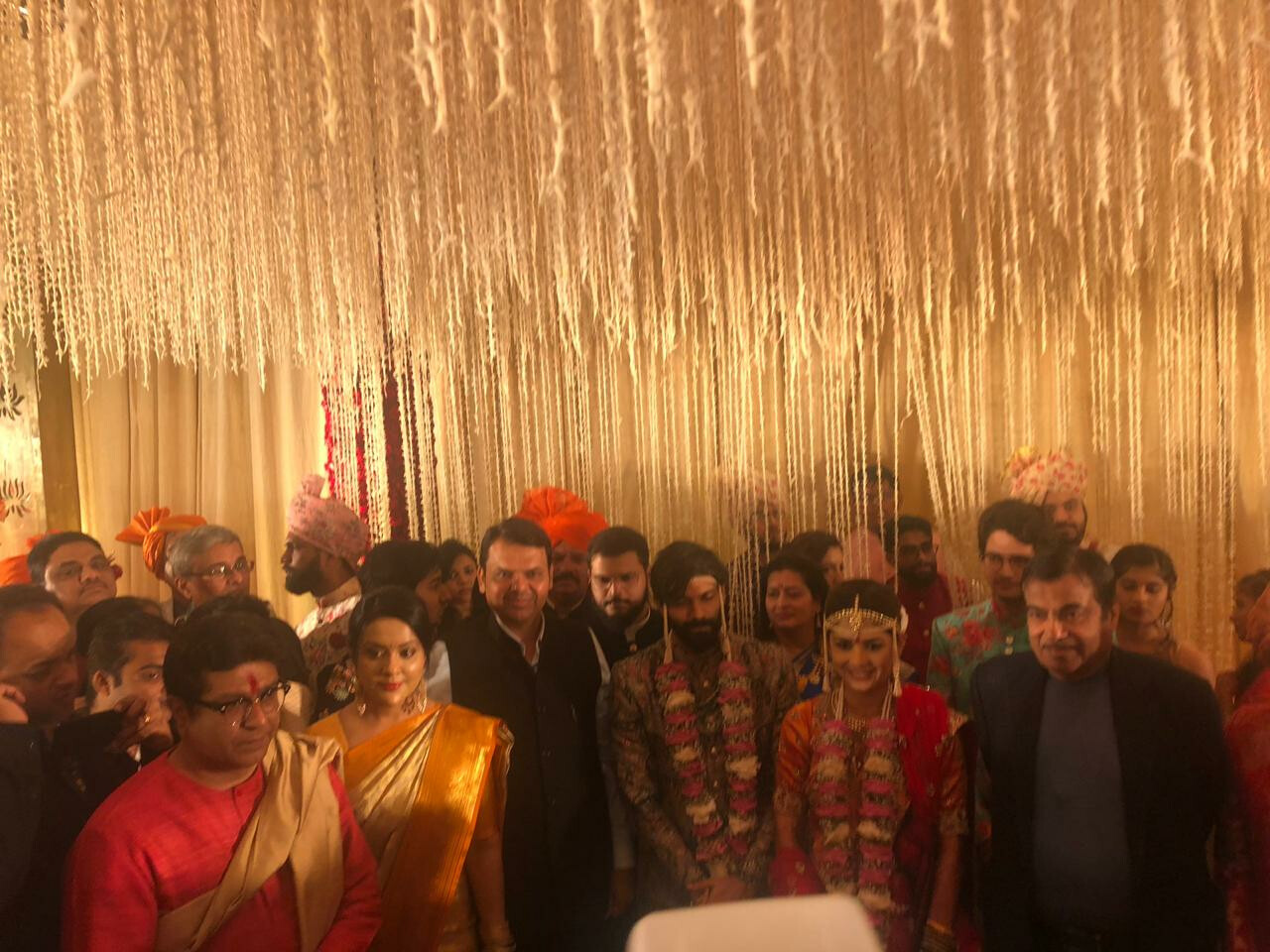 त्यानुसार रविवारच्या विवाह सोहळ्याला राज्यपाल सी विद्यासागर यांच्यासह उद्योगपती रतन टाटा, मास्टर-ब्लास्टर सचिन तेंडुलकर, अभिनेता अमिर खान, ज्येष्ठ गायिका आशा भोसले यांच्यासह अनेक सेलिब्रिटींनी हजेरी लावत नवदांपत्याला आशीर्वाद दिले. मोदी-शाह यांनी निमंत्रण नसल्यानं मुख्यमंत्री आणि इतर भाजपा नेते हजेरी लावणार का असा प्रश्न विचारला जात असतानाच मुख्यमंत्र्यांनी सपत्नीक लग्नाला उपस्थिती लावत सर्व चर्चांना पूर्णविराम दिला. तर भाजपाच्या आशिष शेलार यांच्यासह अन्यही नेत्यांनी लग्नसोहळ्याला उपस्थिती लावली.