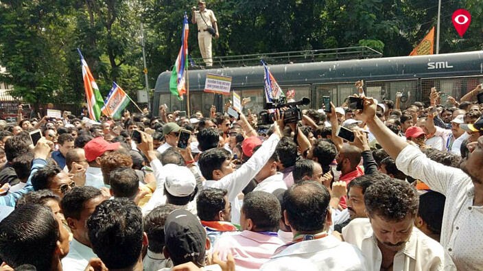 11:57 am - कशाला हवी बुलेट ट्रेन नियमित करा, नियमित करा लोकल ट्रेन अशा घोषणा देत कार्यकर्त्यांनी संपूर्ण परिसर दणाणून सोडला. चर्चगेट स्थानकाबाहेर ऐन रस्त्याच्या मधोमध दोन ट्रक उभे करून स्टेज बांधण्याचा घाट, ट्रॅफिकची कोंडी असताना पोलिसांकडून कोणतीही कारवाई नाही.