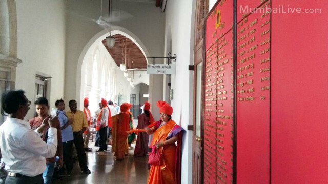मुंबई महापालिकेतील मनसेच्या ६ नगरसेवकांच्या शिवसेनेतील विलीनीकरणाला कोकण विभागीय आयुक्तांनी मान्यता दिल्यानंतर मागील महापालिका सभागृहात महापौरांनी त्यांच्या नावाची अधिकृत घोषणा केली. त्यानुसार मनसेच्या सहाही नगरसेवकांचा महापालिकेत प्रवेश केला. त्या सहाही नगरसेवकांनी सभागृहात उपस्थित लावल्यानंतर शिवसेनेने आपली सदस्य संख्या वाढल्याने शक्ती प्रदर्शन करत आनंदोत्सव साजरा केला. यावेळी शिवसेनेचे सर्व सदस्य भगवे फेटे बांधून सभागृहात उपस्थित होते.