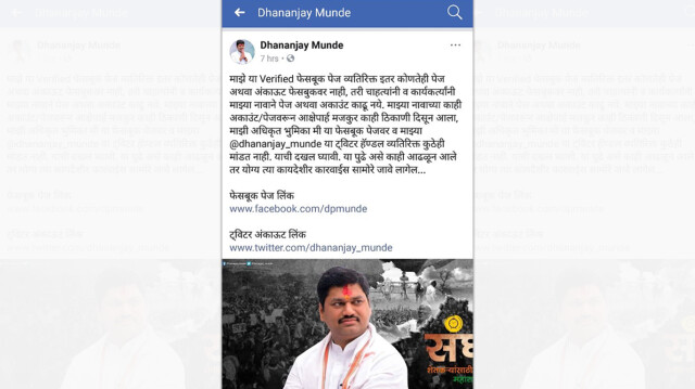 विधान परिषदेचे विरोधी पक्षनेते मा.धनंजय मुंडे यांच्या फेक अकाऊंटवरुन व अन्य काही अकाऊंट मधून " मी 21 आमदारांसह राष्ट्रवादी कॉंग्रेसमध्ये प्रवेश करणार" अशा आशयाची पोस्ट आज सर्वत्र व्हायरल झाली.