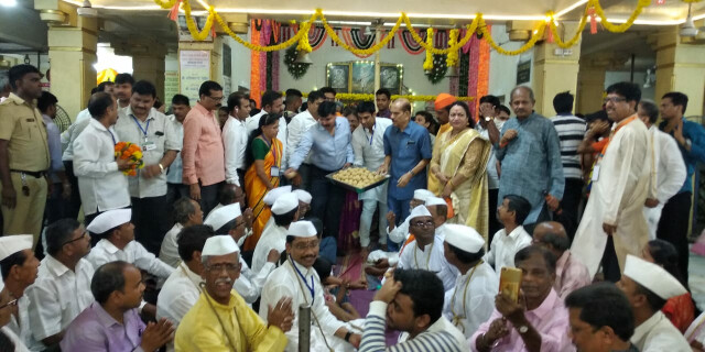आषाढी एकादशीला महाराष्ट्राच्या कानाकोपऱ्यातून लाखो भाविक विठ्ठल नाम आळवत पायी चालत पंढरपूर गाठतात. परंतु मुंबई आणि परिसरातील ज्या भाविकांना पंढरपूरला जायला जमत नाही, ते आवर्जून वडाळ्यातील प्रतिपंढपूर मंदिरात येऊन विठ्ठल-रखूमाईचं दर्शन घेतात. यंदा आमदार प्रसाद लाड सपत्नीक विठ्ठल मंदिरातील महापूजेत सहभागी झाले होते. तर प्रवास करून येणाऱ्या भाविकांसाठी डब्बेवाल्यांच्या रोटी बँकेच्यावतीनं फराळ व पाण्याचं वाटप करण्यात आलं.